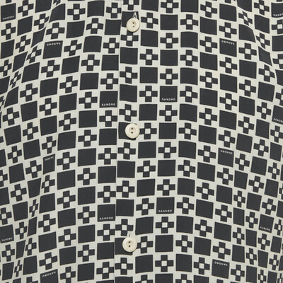Sandro’s printed crepe shirt reflects modern ease with Parisian flair. Cut from lightweight fabric in black and beige tones, it features a relaxed silhouette and short sleeves that enhance breathability. The soft drape and fluid finish make it a refined choice for warm weather styling.