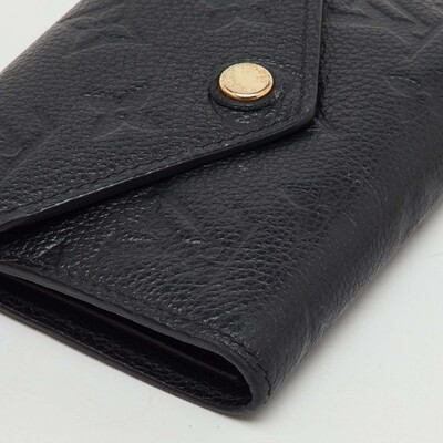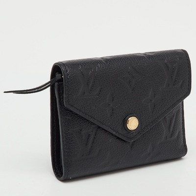 Every detail matters in this Louis Vuitton Victorine wallet. Crafted from black Monogram Empreinte leather, its compact frame holds cards and cash with ease, while the textured embossing turns a simple accessory into a tactile expression of luxury.