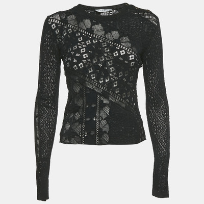 Sandro Black Stretch Lace Sheer Top M 1231754 (чёрный, lpn31077377)