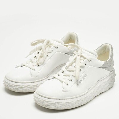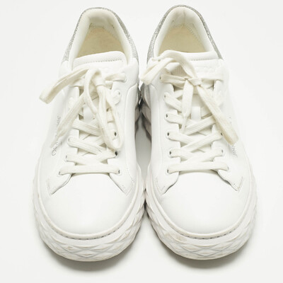 Jimmy Choo White/Silver Leather Diamond Light Maxi Sneakers Size 39 1231669 - 1