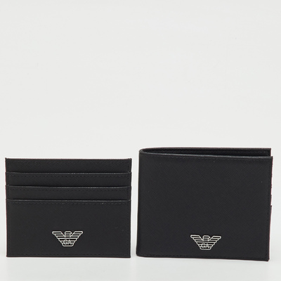 Emporio Armani Black Saffiano Leather Gift Set Twin Wallet 1231465 - 1