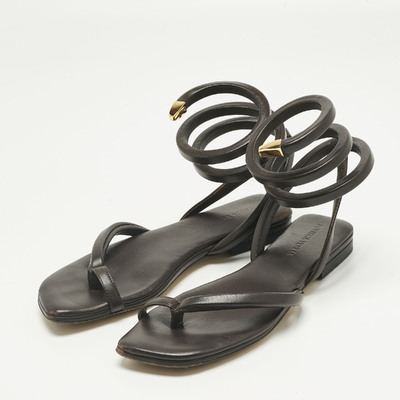 Bottega Veneta Dark Brown Leather Spiral Flat Sandals Size 37 1231457 (коричневый, lpn31077418)