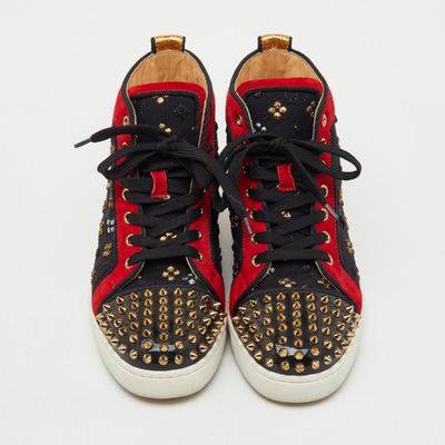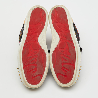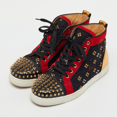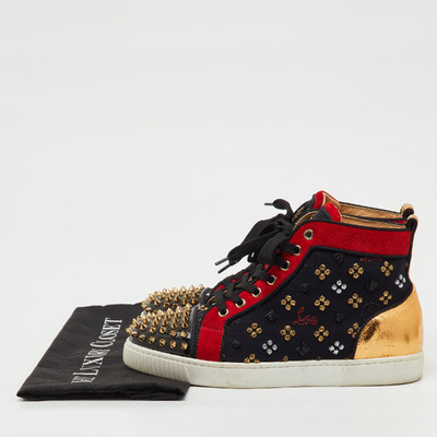 Christian Louboutin Multicolor Fabric and Leather Lou Spike Orlato High Top Sneakers Size 38.5 1230766 (lpn31077458)