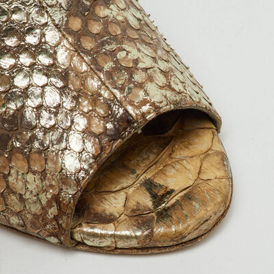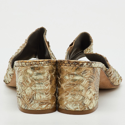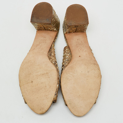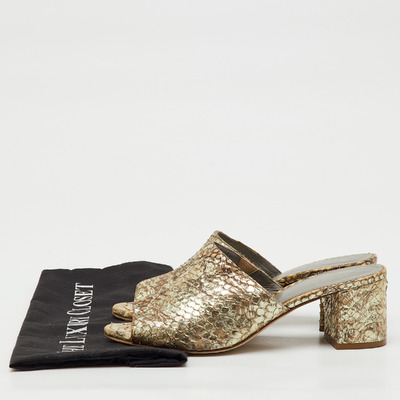 Gina Metallic Beige Snakeskin Leather Block Heel Slide Sandals Size 38 1231221 (бежевый, lpn31077481)