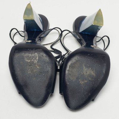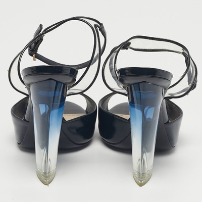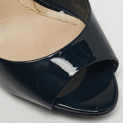 Dior Navy Blue Patent Leather Ankle Strap Sandals Size 37 1231225 (чёрный, lpn31077493)