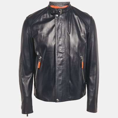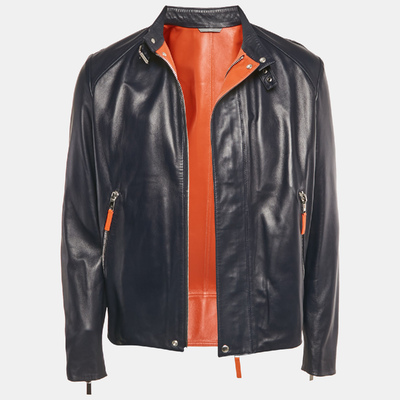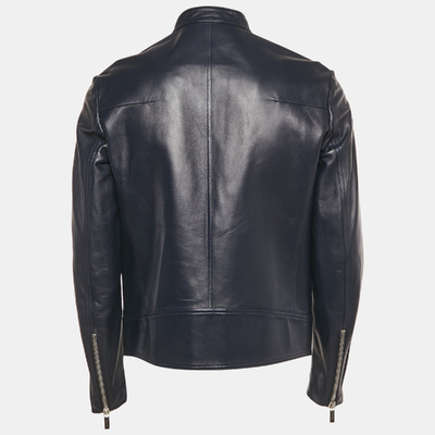 Dior Homme Navy Blue Leather Zip-Up Jacket L 1210282 (lpn31077545)