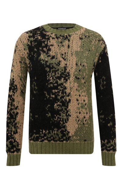 Свитер выполнили фактурной вязкой из полушерстяной пряжи в цветах камуфляжа. Сзади рядом с ребристой горловиной — фирменная металлическая литера D. Наши стилисты предлагают сочетать модель с лаконичными брюками.