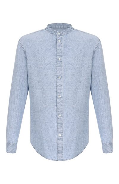 Выбеленную джинсовую рубашку выполнили из хлопкового шамбре. Модель с фигурным низом, воротником-стойкой и прямоугольными манжетами застегивается перламутровыми пуговицами.