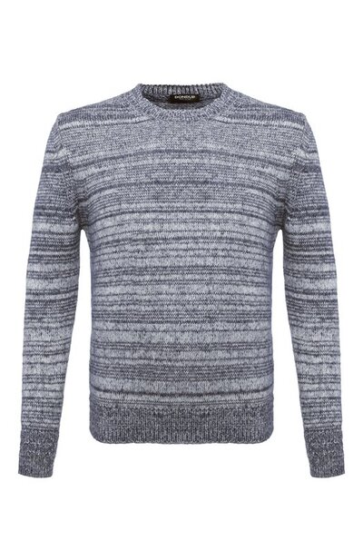Меланжевый свитер связали из пряжи на основе нейлона и хлопка с добавлением мохера и шерсти. Полосатую модель декорировали сзади миниатюрной литерой D. Непринужденный повседневный образ поддержат джинсы и кеды.