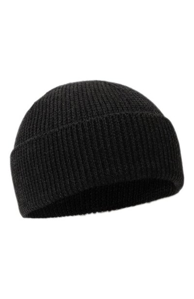 Графитовая эластичная шапка без декора пропускает воздух, хорошо держит тепло и не электризует волосы. Однотонный облегающий аксессуар с рельефными узорами связан из мягкой шерстяной пряжи с шелковистыми тонкими волокнами. Широкий отворот обеспечивает дополнительную защиту от ветра.
