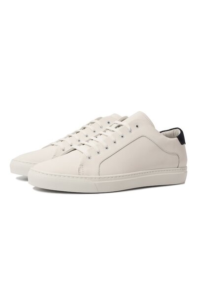 Для пошива лаконичных белых кедов использовали мягкую телячью кожу, которая сочетает прочность и пластичность. Принадлежность марке обозначили тисненым логотипом на контрастном заднике из фактурной замши. Пару с внутренней отделкой из мягкого терри установили на легкую гибкую подошву.