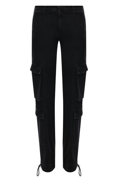 Черным джинсам Tori с заниженной посадкой привили гены карго, дополнив их крупными накладными карманами: сразу по два на каждой брючине. Для пошива модели использовали слегка эластичный хлопковый деним плотностью 11 3/4 унции, который делает легче и приятнее на ощупь шелковистый модал в составе. Потертые брюки с регулируемыми кулисками снизу украсили миниатюрной серебристой буквой D сзади.