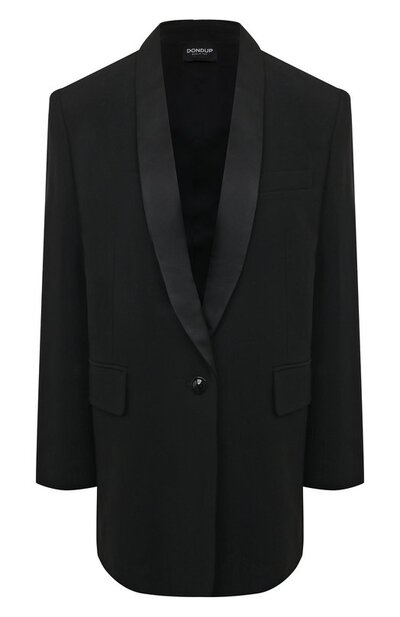 Черный смокинг с акцентированными плечами и атласными шалевыми лацканами словно одолжили в мужском гардеробе. Для пошива модели силуэта оверсайз, визуально делающего фигуру изящнее, использовали мягкий полушерстяной креп, который не вытянется со временем. Чтобы составить образ для вечеринки, наши стилисты предлагают дополнить такой жакет, надетый на голое тело, узкими брюками и туфлями.