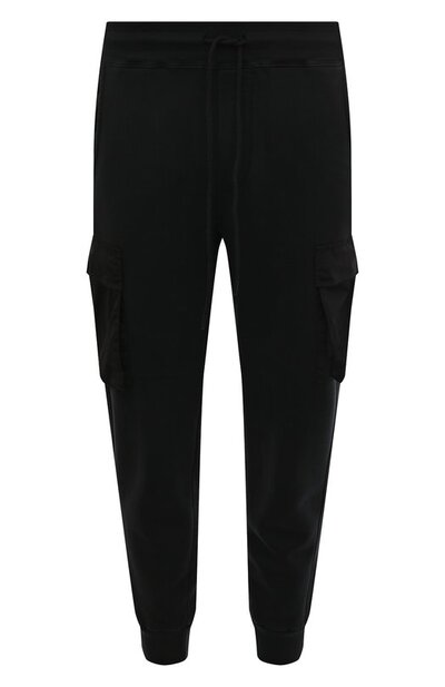 Команда марки привила черным джоггерам с традиционными эластичными манжетами и поясом-кулиской гены карго, дополнив их накладными нейлоновыми карманами с клапанами по бокам. Для пошива модели использовали мягкий хлопок, поддерживающий естественную терморегуляцию. Предлагаем создать образ с футболкой и кроссовками в тон и дополнить его бежевой курткой на случай прохлады.