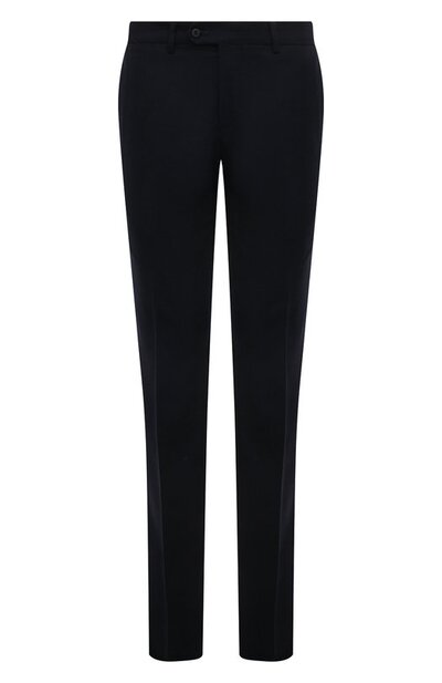 Зауженные темно-синие брюки идеально садятся по фигуре. За это отвечают тщательно продуманный классический крой и тонкая костюмная шерсть с небольшим количеством эластана. Гладкий материал из туго скрученных нитей практически не мнется и надолго сохраняет первоначальный вид. Универсальная модель поддержит образы разной степени формальности.