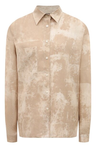 Свободную бежевую рубашку сшили из тончайшего льна с мраморным рисунком. Пористые волокна невесомого материала практически не задерживают воздух, сохраняя ощущение комфорта в летнюю жару. Наши стилисты предлагают включить модель с нагрудным карманом и широкой бантовой складкой в образ total beige, дополнив короткими шортами и элегантными сандалиями с тонкими ремешками.