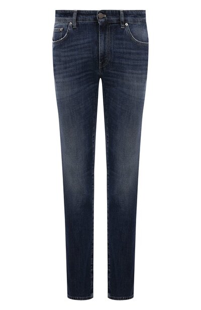 Зауженные джинсы изготовлены из эластичного хлопка с заломами и потертостями. Модель с пятью карманами и брендированным патчем органично дополнит образ с футболкой, толстовкой и кедами.