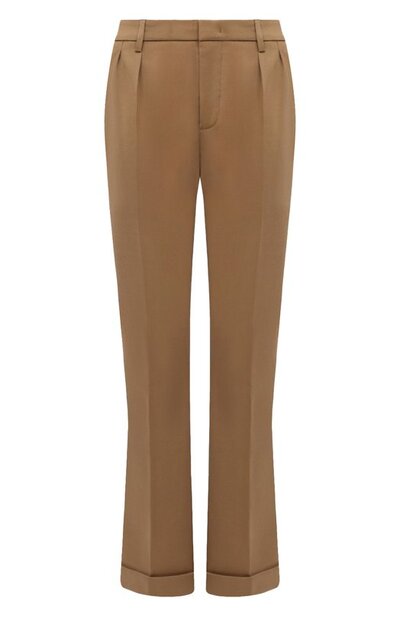 Брюки Miki силуэта Boot cut органично будут смотреться и в офисе, и на прогулке в городе. Для пошива чиносов с защипами вдоль пояса, стрелками, отворотами и четырьмя карманами использовали шерстяной габардин.