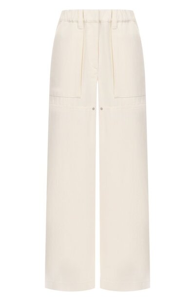 Брюки Utility Track с боковыми и задними накладными карманами сшили из окрашенного денима Wrinkled на основе хлопка и шерсти. Заднюю шлевку на поясе модели декорировали фирменной цепочкой мониль.