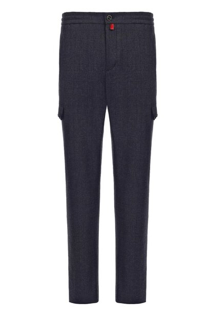 Брюки из клетчатой шерсти дополнили тремя парами карманов: боковыми, задними и карго. О принадлежности модели марке рассказали брендированными пуговицами и жакроном, а также ярлыком фирменного алого оттенка.