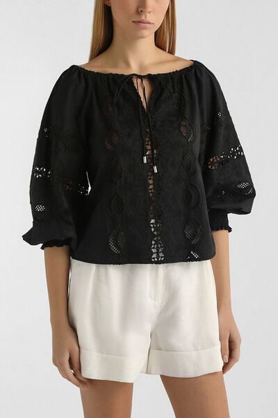 Блуза хлопковая с открытыми плечами и шитьем Liu Jo 7853836 (чёрный, lpn31094407)