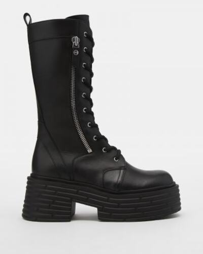 Высокие ботинки AGL выполнены из гладкой кожи. Объемная рельефная подошва из резины создает аутентичный силуэт и защищает обувь от износа. Текстильная подкладка и меховая стелька сохраняют тепло и обеспечивают исключительную мягкость. Для удобства пара на шнуровке дополнена молниями по бокам.