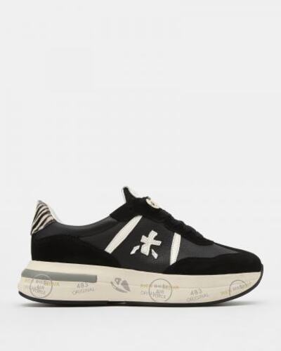 Кроссовки Cassie от Premiata выполнены из зернистой кожи со вставками из замши. Задник дополнен вставкой из ворсовой кожи с принтом зебры. Подкладка и стелька из натуральной козьей кожи адаптируются к форме стопы, за счет чего в обуви удобно на протяжении всего дня. Массивная подошва с выступающей пяткой изготовлена из инновационного сверхлегкого материала ЭВА и дополнена фирменным дизайном. Язычок декорирован логотипом, а боковые поверхности — оригинальной эмблемой.