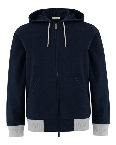 Эта олимпийка воплощает гармонию стиля и комфорта, создавая эффектный и современный образ. Глубокий тёмно-синий цвет изделия добавляет изысканности и универсальности, делая его идеальным выбором для различных ситуаций. Выполненная из мягкого и приятного на ощупь материала, олимпийка гарантирует комфорт и свободу движений. Капюшон снабжен контрастными шнурками с металлическими наконечниками, что придаёт спортивный шик и добавляет функциональности, защищая от непогоды. Молния спереди обеспечивает удобство и практичность, позволяя легко комбинировать с другими элементами гардероба. Вместительные карманы добавляют степень удобства, оставаясь верными спортивному стилю. Манжеты и нижний край оформлены контрастной текстильной резинкой, создавая интересный визуальный акцент и обеспечивая идеальную посадку. Эта олимпийка станет незаменимым элементом гардероба для тех, кто ценит сочетание стиля и функциональности.