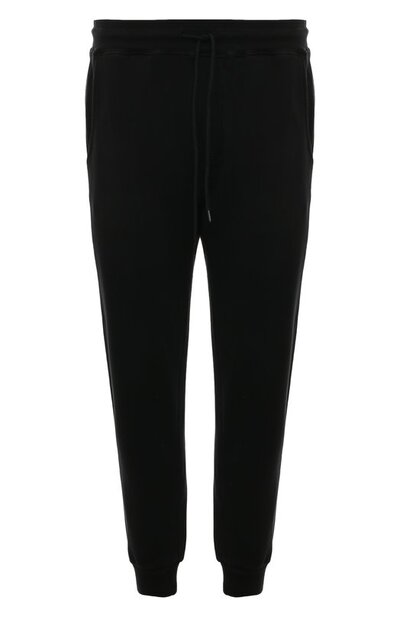 Для пошива черных джоггеров мастера марки использовали мягкий хлопковый трикотаж. Материал слегка тянется в ширину и в сочетании со свободным кроем, не сковывающим движения, делает модель особенно комфортной. За удобную посадку на талии отвечает широкий регулируемый пояс-кулиска. Сзади изделие дополнили двумя накладными карманами из тонкого денима с эффектом делаве.