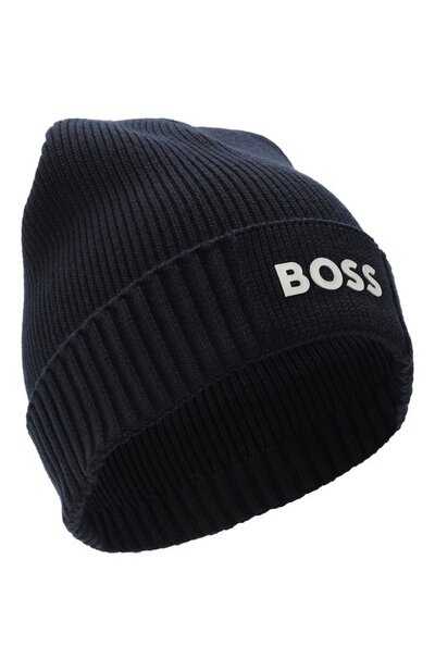 Шапку бини Asic связали узором в рубчик из хлопковой пряжи с добавлением шерсти первого пострига. На широком отвороте модель декорировали прорезиненным логотипом марки.