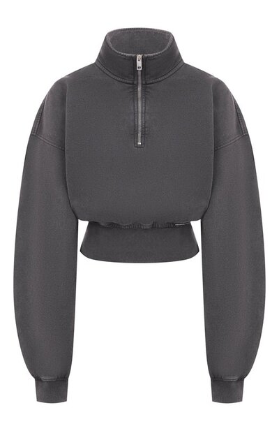 Неравномерно окрашенный свитшот с короткой молнией на воротнике-стойке выполнили из хлопка. Над широким эластичным поясом закрепили брендированный ярлык.