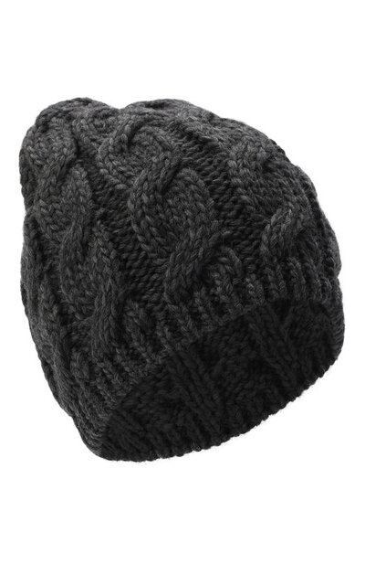 Шапку-бини Sophia с рельефными арановыми узорами связали из смесовой пряжи на основе шерсти овцы и альпаки. Аксессуар с узкой манжетой, выполненной в технике английской резинки, украсили золотистым медальоном-эмблемой C-Me.
