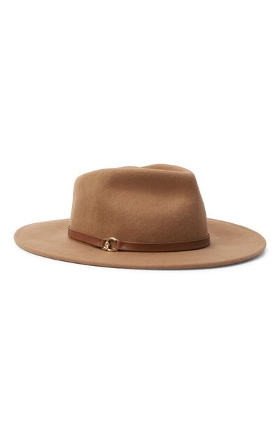 Шляпу Elise с заломом на тулье выполнили из шерстяного фетра. Аксессуар украсили кожаным ремешком, концы которого соединили фирменной пряжкой C-Me.