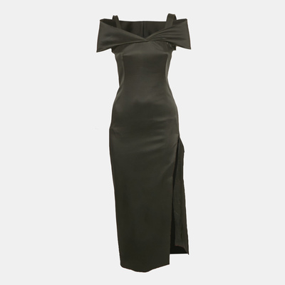 Off-White Satin Cold Shoulder Midi Dress S 1235830 (чёрный, lpn31105118)