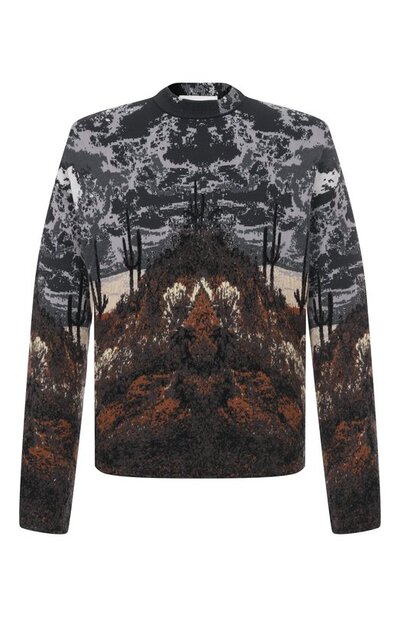 Джемпер с восьмицветным жаккардовым узором Oniric Desert и логотипом на спинке выполнили из гладкой и пушистой пряжи на базе хлопка с добавлением шерсти и мохера. Модель со спущенной линией плеч станет основой повседневного образа.