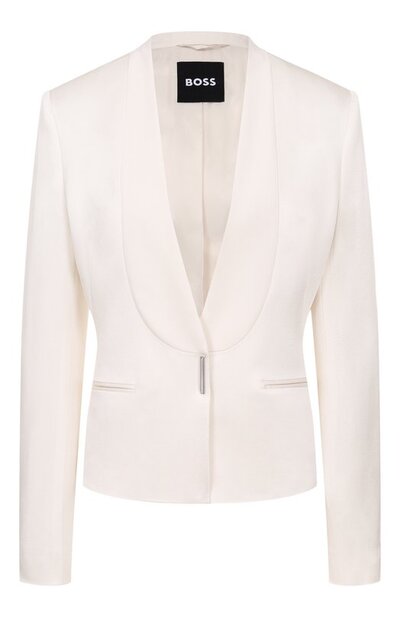 Короткий жакет Jia с подкладкой из полиэстера и вискозы выполнили из ткани сабле на основе ацетата. Модель с шалевыми лацканами и узкими боковыми листочками застегивается крючком.