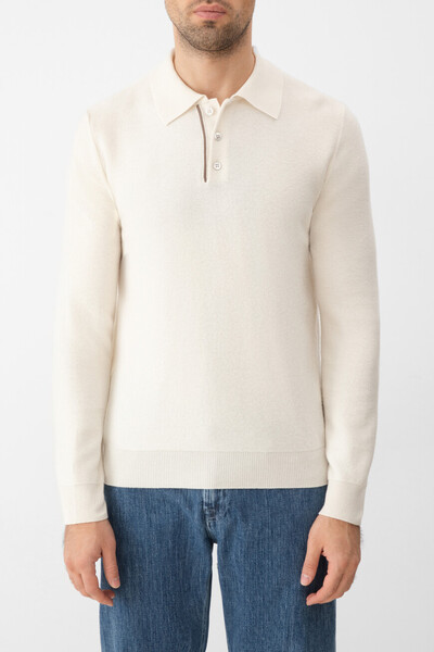 Белое поло Zilli с длинными рукавами. Для производства модели прямого силуэта используется трикотаж-пике на основе мягкой шерсти и кашемира. Изделие отличается наличием пуговичной застёжки и неброского декора - замшевой отделки планки. В поло предусмотрены широкий эластичный пояс и манжеты-резинки для оптимальной посадки по фигуре.