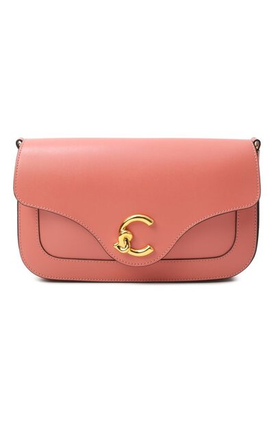Сумку C-Me со съемным регулируемым ремнем и застежкой на магнитную кнопку выполнили из гладкой телячьей кожи. В основном отделении предусмотрели карман с молнией, а под клапаном с пряжкой-эмблемой – два плоских кармана.