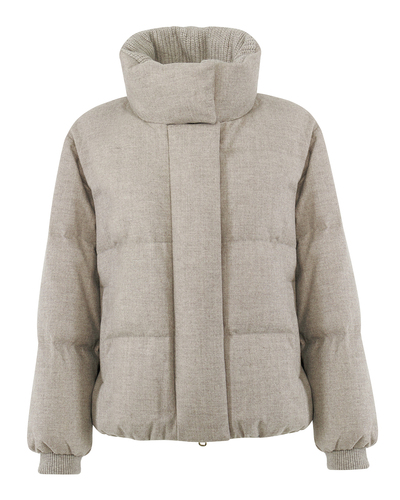 Этот пуховик представляет собой прекрасный пример сочетания утончённого стиля и функциональности. Выполненный в нежном сером оттенке, он излучает спокойствие и элегантность, вписываясь в любую палитру зимнего гардероба. Эстетика объемных форм подчёркивается чёткими горизонтальными прострочками, которые не только фиксируют наполнение, но и создают структурированную графику. Высокий воротник и удлиненная деталь спереди обеспечивают надёжную защиту от холодных ветров и добавляют изделию особый шарм. Отделка включает скрытую застёжку, придающую модели чистоту линий и лаконичность. Манжеты на резинке гарантируют идеальную посадку и дополнительный комфорт, предотвращая проникновение холодного воздуха. Подкладка из мягкого и тёплого материала делает пуховик особенно уютным, обеспечивая превосходную теплоизоляцию. Этот пуховик станет идеальным выбором для создания как повседневных, так и более изысканных образов, сочетая практичность с модным дизайном.