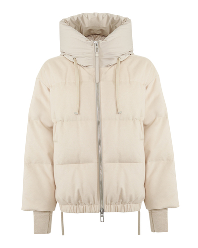 Этот стильный пуховик в изысканном бежевом оттенке представляет собой идеальное сочетание современного дизайна и функциональности. Его мягкая, слегка оверсайз форма создает актуальный силуэт, обеспечивая комфорт и защиту от холода. Верхняя часть изделия украшена капюшоном, который выделяется своим объёмом и плавными линиями, добавляя модели динамичный акцент. Регулируемые шнурки на капюшоне позволяют адаптировать его под индивидуальные предпочтения, добавляя функциональности. Горизонтальная простежка создает четкие линии, обеспечивающие равномерность наполнения и визуальную текстурированность. Центральная застежка-молния с яркими декоративными элементами добавляет динамики и завершает образ. Объемные карманы, расположенные спереди, не только функциональны, но и служат стильным элементом отделки, сохраняющим общую эстетику минимализма. Манжеты и подол на резинке обеспечивают идеальную посадку и комфортное прилегание. Этот пуховик станет универсальным элементом в зимнем гардеробе, предлагая стиль и тепло в любых условиях. Отлично подходящий как для городских прогулок, так и для активного отдыха на свежем воздухе, он подчеркнет ваш уверенный и модный облик.