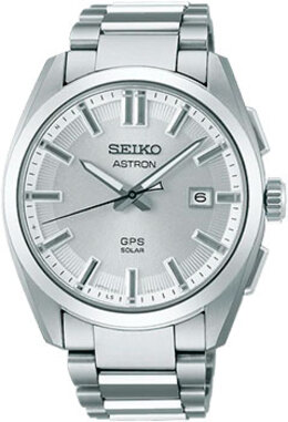 Мужские кварцевые часы на солнечной батарее. Калибр механизма 3X32. Запас хода 6 месяцев при полной зарядке, до 2х лет в режиме энергосбережения. Защита от перезаряда. Автоматическая коррекция времени и часового пояса через GPS. Вечный календарь (до 28 февраля 2100 года). Авиарежим. Центральные часовая, минутная и секундная стрелки. Апертура даты в позиции 3 часов. Серебристо-белый циферблат. Стрелки и часовые метки с люминесцентным покрытием. Круглый корпус выполнен из титана. Диаметр корпуса составляет 41 мм, толщина 13,1 мм. Титановый браслет, раскладывающаяся застежка. Устойчивое к возникновению царапин сапфировое стекло. Водостойкость WR 100 (плавание без погружения).