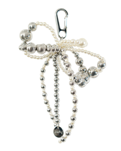 Этот брелок — воплощение изысканности и утончённой элегантности, идеально подходящий для тех, кто ценит красоту в деталях. Изготовленный из комбинации жемчужных и серебристых бусин, он формирует изящный узор в виде лука, что придаёт аксессуару воздушность и стиль. Бусины блестят и перламутровым, и металлическим блеском, создавая интригующую игру света и добавляя глубину текстурности. Стильный металлический диск с гравировкой логотипа завершает дизайн, акцентируя внимание на бренде. Крепкий металлический карабин обеспечивает надёжность и лёгкость в использовании, позволяя прикрепить брелок к сумке, рюкзаку или ключам. Этот аксессуар станет великолепным акцентом, подчеркивающим индивидуальность и утончённый вкус владельца.