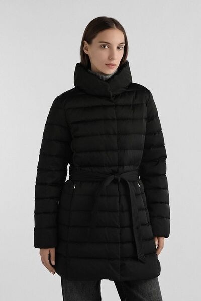 Пуховик с воротником стойкой и поясом Geox 8167749 (чёрный, lpn31124063)