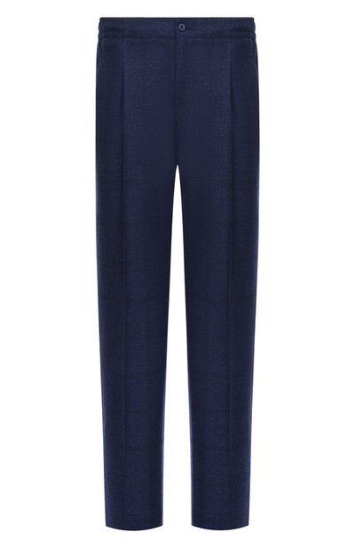 Брюки с эластичным поясом и защипами, преходящими в отглаженные стрелки, дополнили двумя парами карманов. Модель в клетку гленчек выполнили из шерстяной фланели.