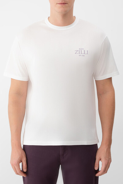 Белоснежная футболка Zilli с традиционным круглым вырезом горловины на резинке. Для пошива прямой модели выбран мягкий хлопковый трикотаж. Изделие декорировано надписью-лого и годом основания Дома, вышитыми слева на груди, а также вставкой с графическим принтом «Fantasy» и элементами вышивки на спинке. Для комфортной посадки футболки по фигуре предусмотрены неглубокие боковые разрезы по нижнему краю.