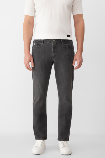 Пятикарманные джинсы из эластичного хлопкового денима от Zilli. Модель окрашена в тёмно-серый оттенок и дополнена выбеленным эффектом на материале. О принадлежности изделия Дому напоминают прямоугольный патч из тёмно-коричневого нубука на плотном поясе в задней части и крупная вышивка в виде культового логотипа с эффектом деграде, размещённая на правом заднем кармане.