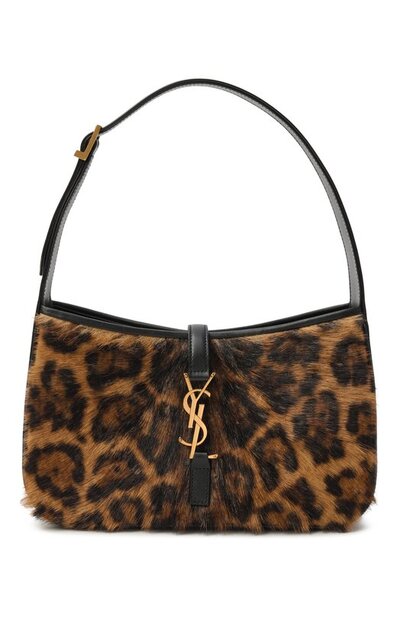 Для создания сумки Le 5 a 7 с регулируемой ручкой использовали шкуру теленка, окрашенную под леопарда, а для отделки выбрали матовую кожу. Аксессуар с внутренним карманом на молнии закрывается ремешком с застежкой-крючком в виде фирменной монограммы.