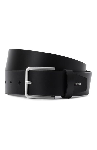 Ремень Drazen стандартной ширины изготовили из гладкой кожи. Модель с объемным логотипом на конце застегивается квадратной пряжкой из сатинированного металла.