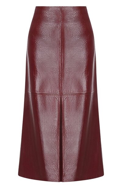 Юбку Rantasa длиной чуть ниже колен дополнили высоким разрезом спереди. Модель из глянцевой искусственной кожи застегивается потайной молнией с пуллером-логотипом.