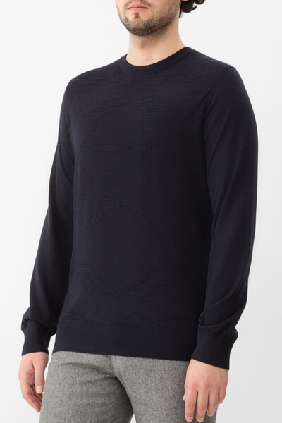 Джемпер ZILLI станет основой множества мужских casual-комплектов. Модель изготовлена из премиального трикотажа на основе кашемира и гладкого шёлка тёмно-синего цвета и декорирована геометрическим узором и мотивом в виде горизонтальных полос спереди в тон основе. Дизайн изделия завершается резинкой на круглом вырезе горловины, манжетах рукавов и широком поясе.